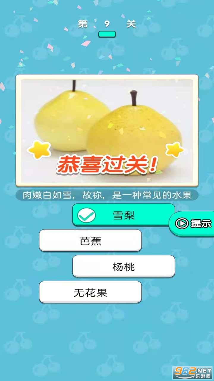 每个关卡中的水果都不同,没有重复的,玩家需要在选项中选出正确的水果;