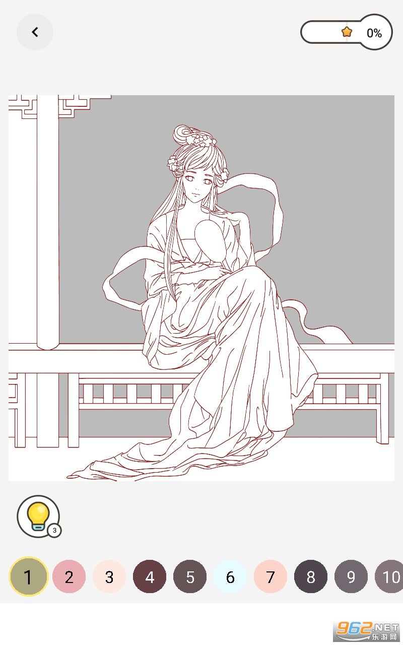 古风涂色游戏是一个免费的数字填色游戏。每张图片都用数字标记,选择你喜欢的画作,按照数字顺序点击涂色完成创作,你还可以生成一个短视频,与朋友分享涂色过程!在古风填色游戏的世界里流连忘返,将焦虑与压力转化为成就感,烦恼和疲惫也在无形中消散!