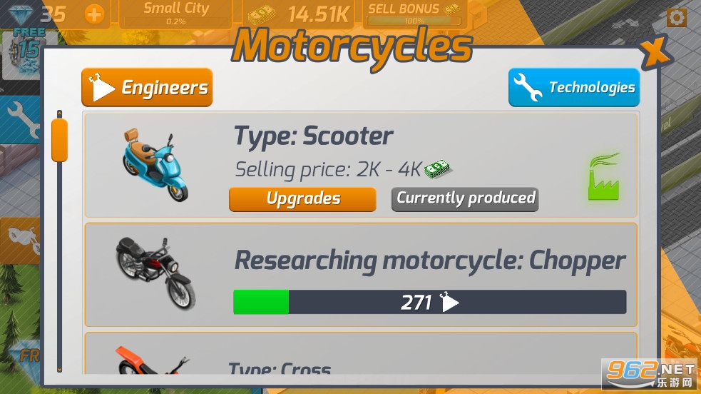 您可以点击以加快收入或保持闲置状态,并观察您的摩托车工厂如何发展。