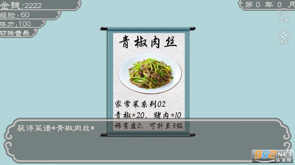 喂喂喂,别流哈喇子了,快看游戏简介!可不是叫你来吃饭的哦!乐百家先祖凭靠一家小酒馆发家,厨艺渐渐闻名于世,而今已成了美食界的传说。而你身为乐百家的后人,自是身负传承手艺的重任。然而天将降大任于斯人,必先干嘛来着?想成大器?那还不赶紧跟着菜谱勤学苦练来养成?十阶养成后,食神大会任你大展身手!吃货提醒:可别忘了打铁磨刀哟~~~~