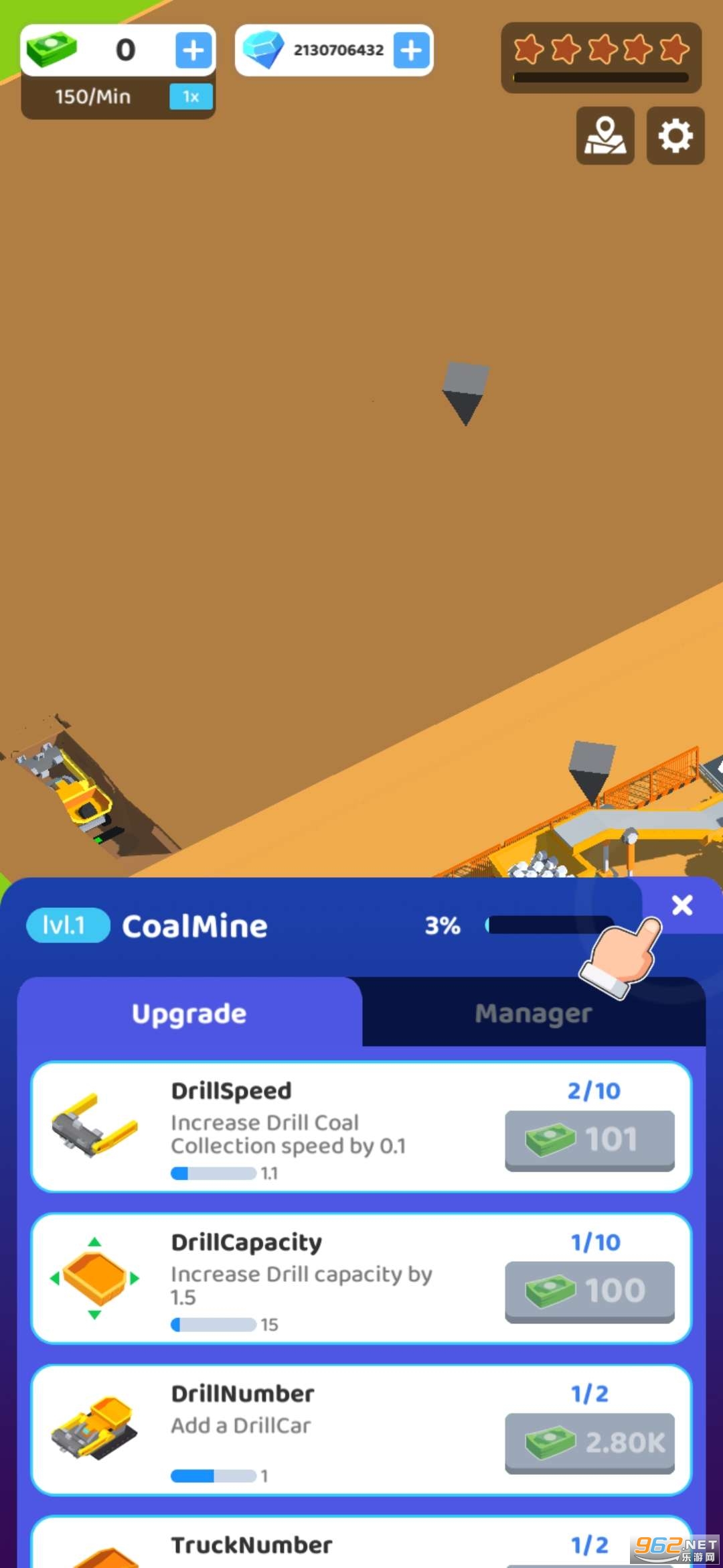 一款很休闲不需要有任何压力的经营放置类游戏,用赚到的钱继续投资,去置办更加先进的设备,聘请更专业的工人,当然几名优秀的副总或者经理也是少不了的,总之你需要尽一切手段来提高开采的工作效率。