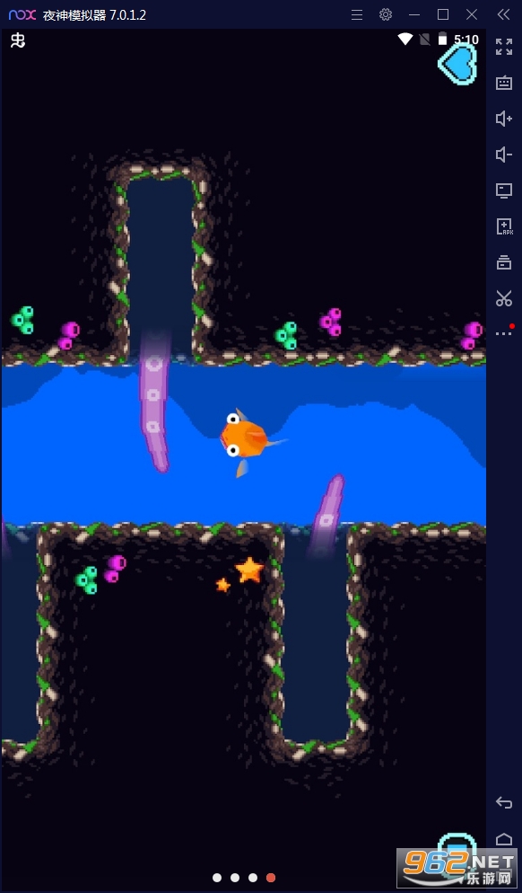 大鱼游动的速度会越来越快,小鱼必须从其他大鱼中穿过,若未躲开被大鱼碰到,则游戏结束,游戏结束后会重新开始会从第一关开始,祝您好运!