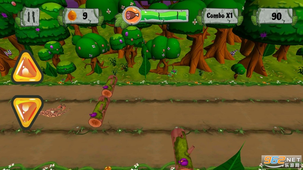 3、与您最喜欢的恐龙一起玩,但要小心前方的许多障碍。从火热的流星从上面掉落到下面的树干。
