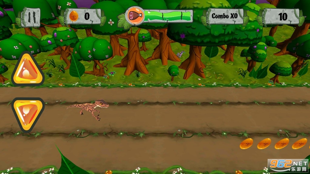 《恐龙生存奔跑DinoSurvivalRun》是一款关于恐龙的跑酷闯关游戏,在原始丛林展开刺激的跑酷冒险之旅,帮助恐龙克服所有的关卡挑战,让它成功到达终点,一路上会遇到各种尖刺之类的陷阱、倒下横在路上的大树、还有各种机关,控制你的恐龙快速避开。