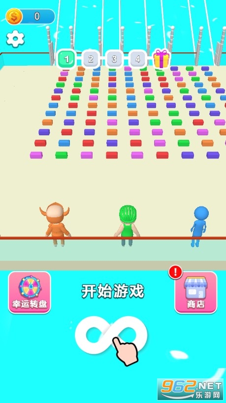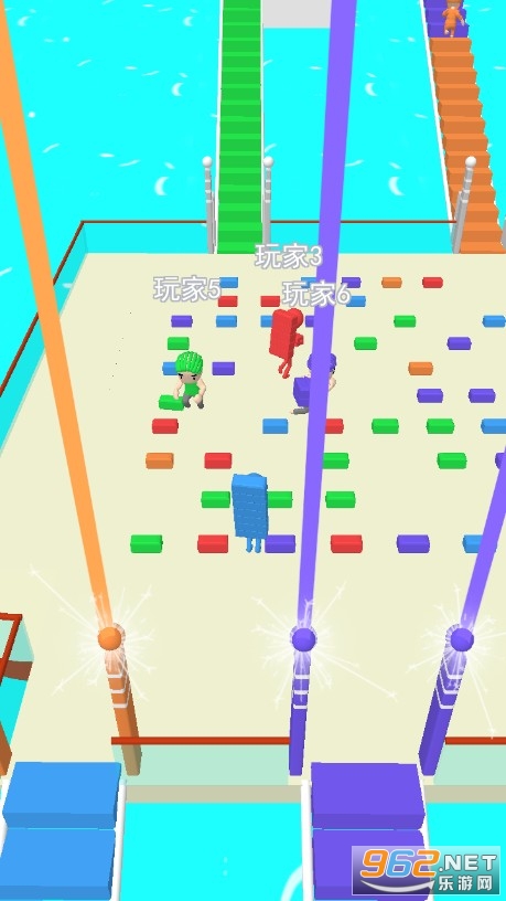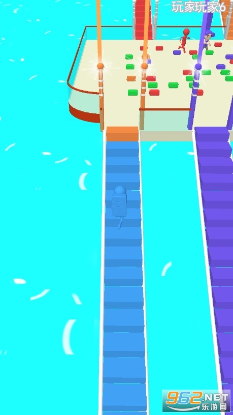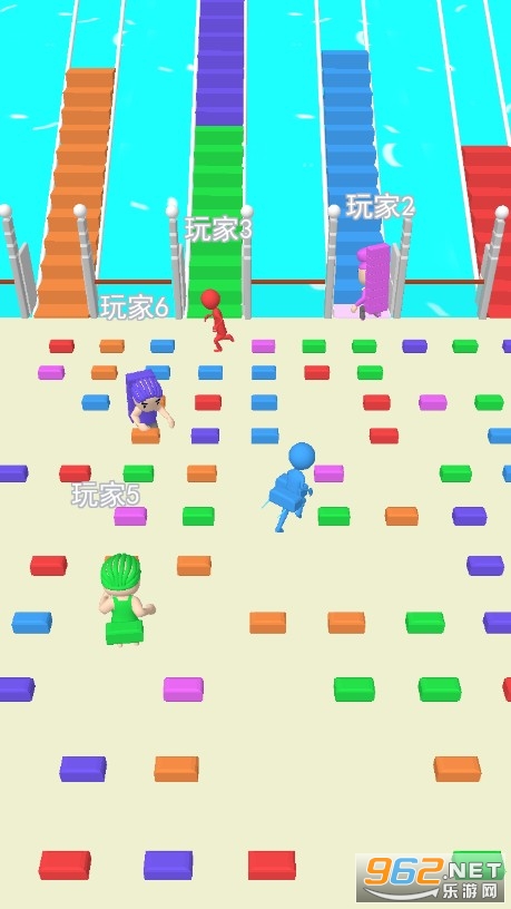 十分精彩的休闲竞技玩法,疯狂的去搬砖搭建桥梁才能继续前进,在平台上会有其他玩家与你对抗,他们会抢夺你的砖块,千万不要被其他玩家撞翻在地,要想尽一切办法去弄到更多的砖块搭桥。