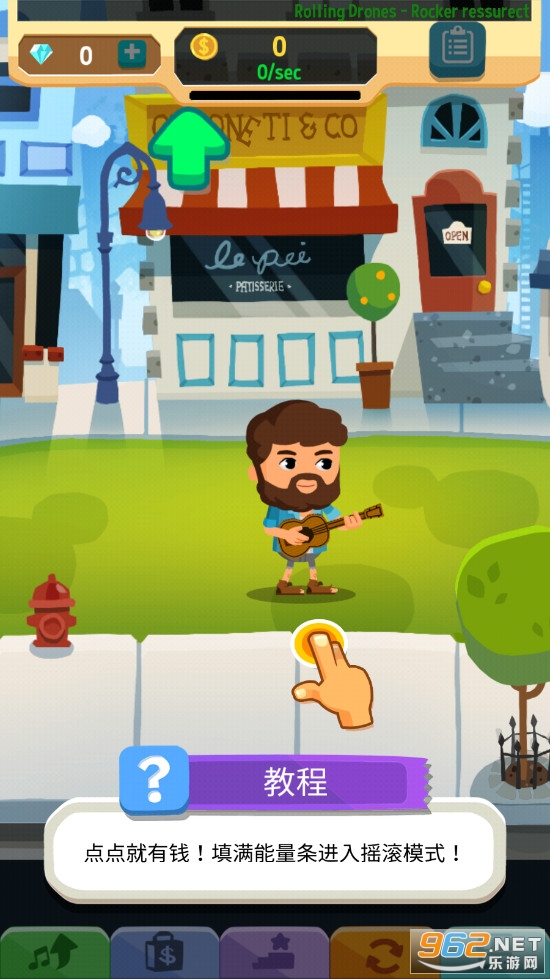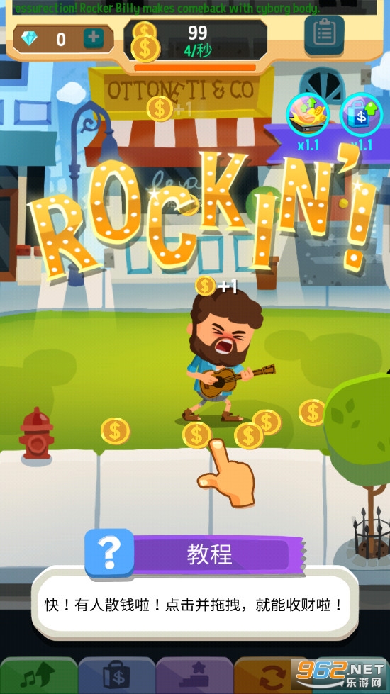 您成为新一代巨星的梦想即将在 Beat Bop 中成变现实,这个点击游戏成就我们白手起家,穷光蛋变成大富翁的故事。从街头拿着厚纸板当吉他的流浪艺人,到在布满钻石的演艺路上疯狂点击成为世界巨星