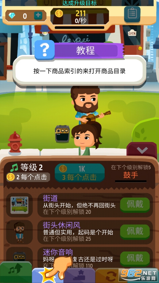 简单又有成就感的小游戏 - 升级可以解锁超过50件新服装,吉他,音响以及更多!