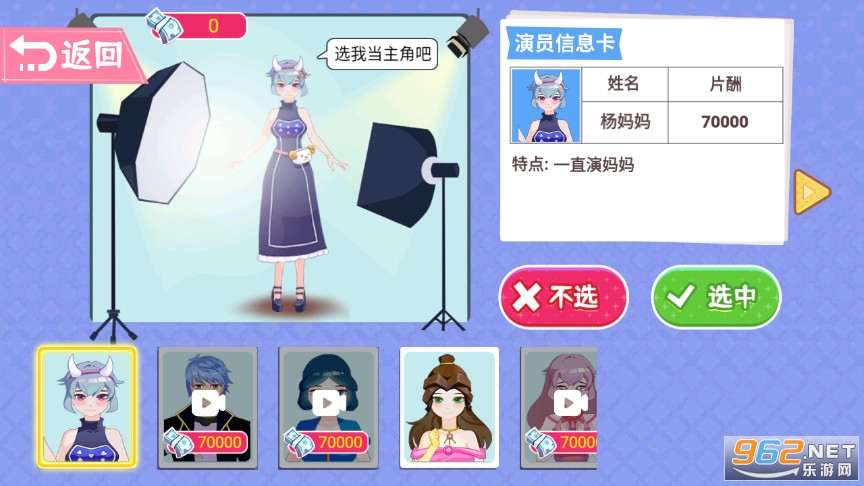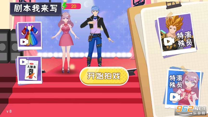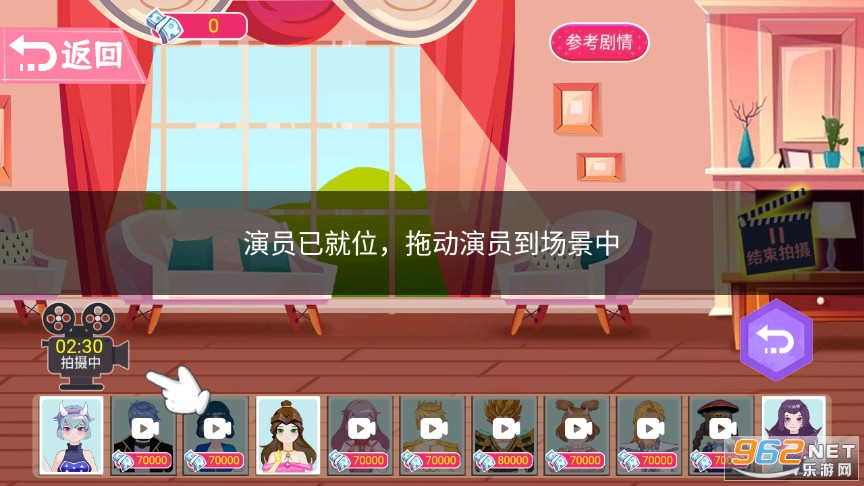 玩家可以挑选拍摄场景,选择喜欢的演员,再搭配上各种道具。