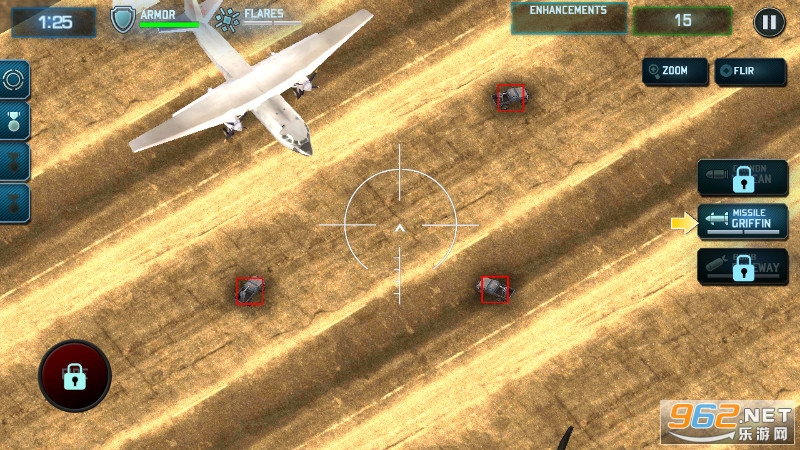 你的飞机拥有世界最先进的设备,包括超远距离红外夜视镜、机枪、导弹等。
