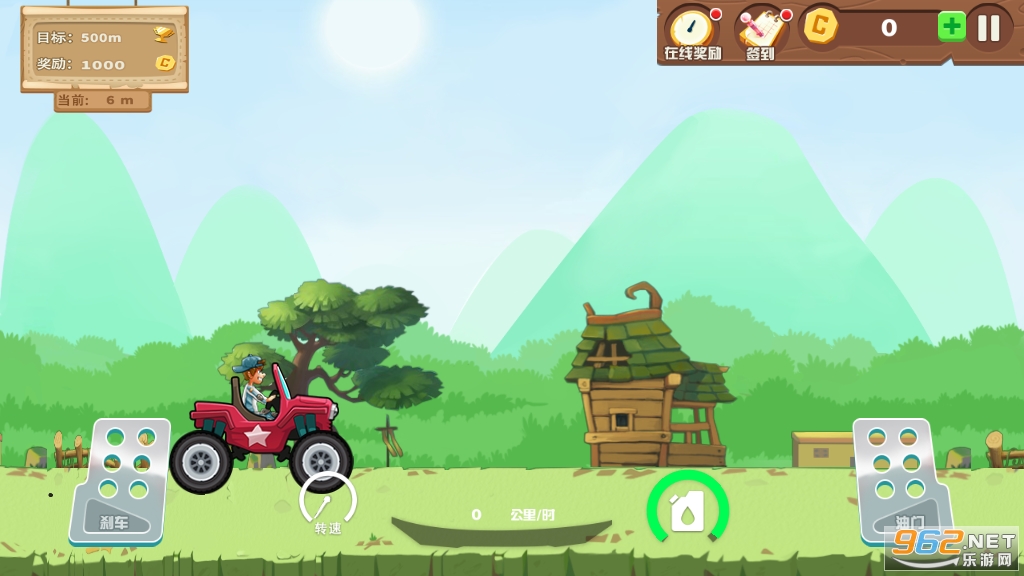3、山地拉力越野狂飙左侧的功能键是刹车踏板,右侧的功能键是加快。