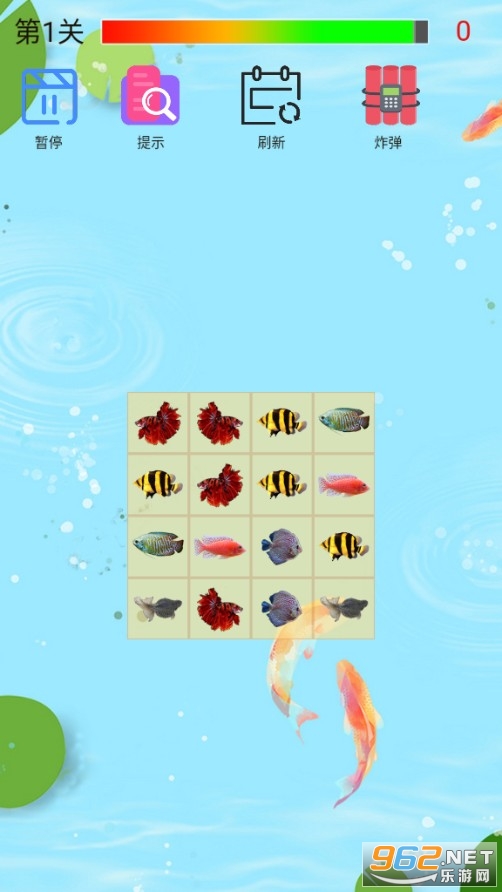 1、考验你的眼力劲,看是否能够快速的找到相邻的相同的鱼类生物进行匹配。
