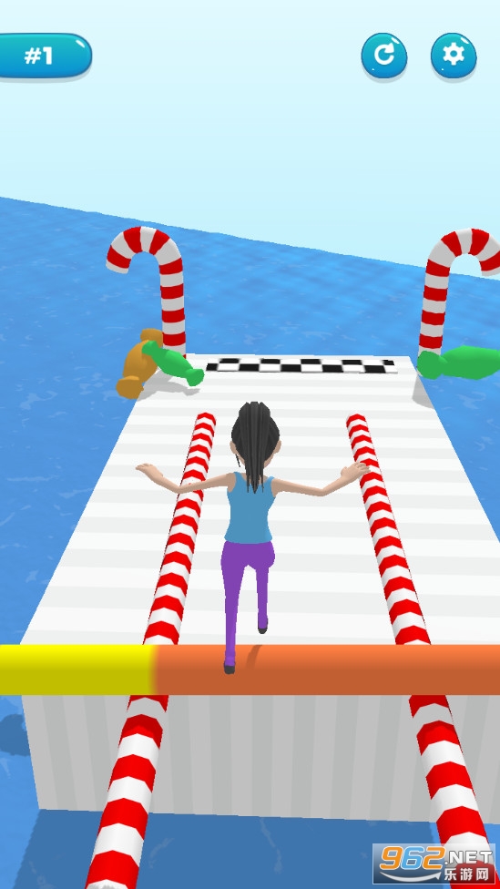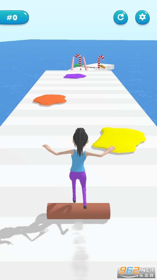 《滚筒小姐姐游戏》是一款简约的控制一个小姐姐去冒险的闯关手游,游戏中小姐姐踩在一个滚筒上,通过一些颜料区域会被染色,而且滚筒会变长,注意前方会出现一些裂缝,需要在单杠或者双杠上滚动过去,如果掉下去,或者滚筒撞击到障碍物等都会结束游戏,请安全到达终点。