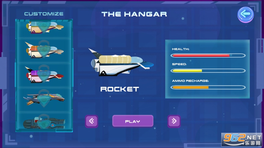 有各种酷炫的太空战机等着你驾驶和战斗,每架战斗机的性能不同。