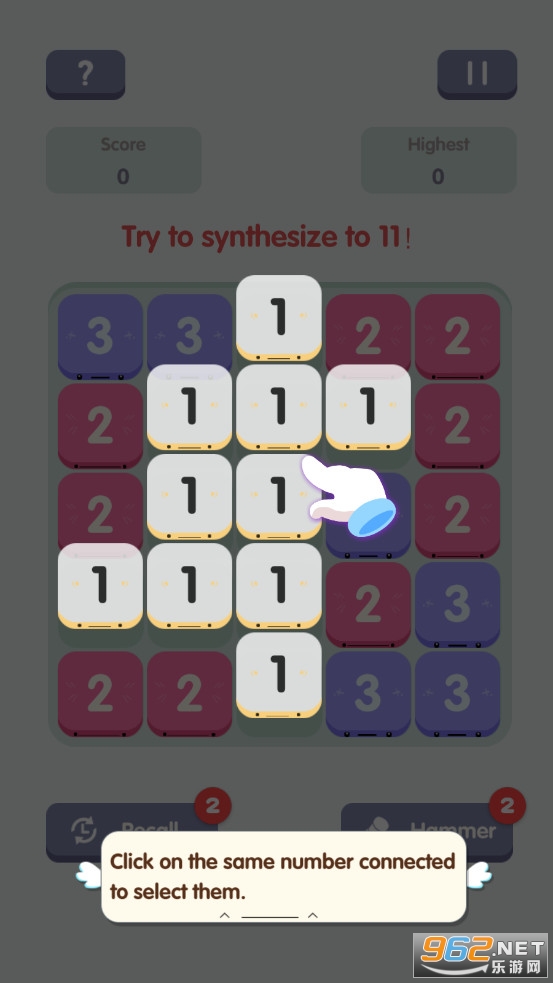 您的目标是合并相同的数字以释放空间。当您一起找到具有相同编号的块时,请点击屏幕以使其聚焦。玩家只需要根据系统要求,在规定的时间内通过连线的形式是方块上数字的综合与系统相同即可。它们将自动合并。用您的智慧获得高分!
