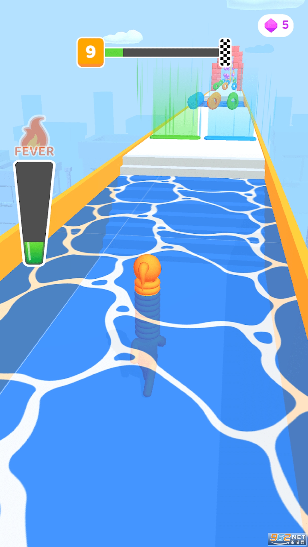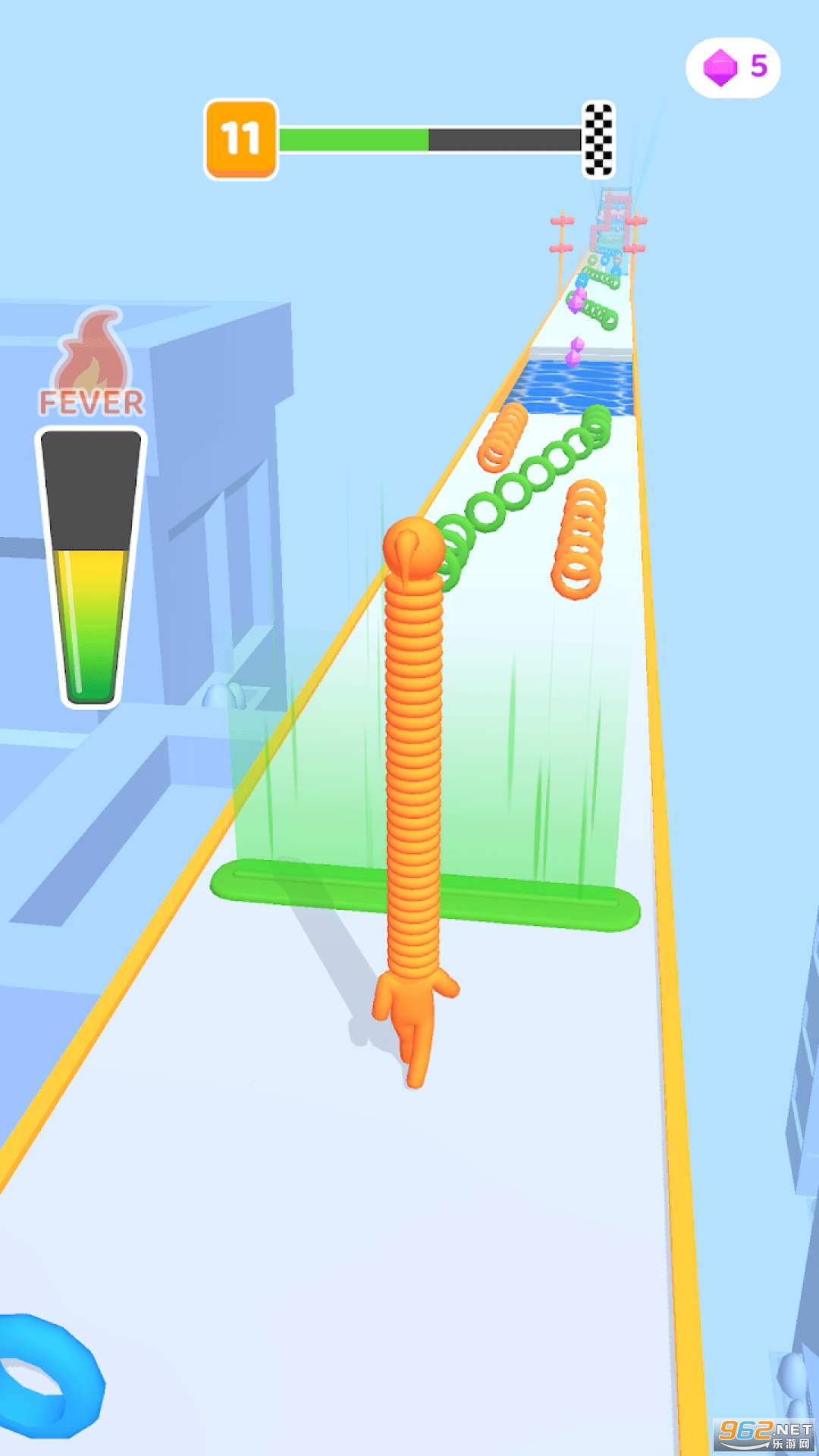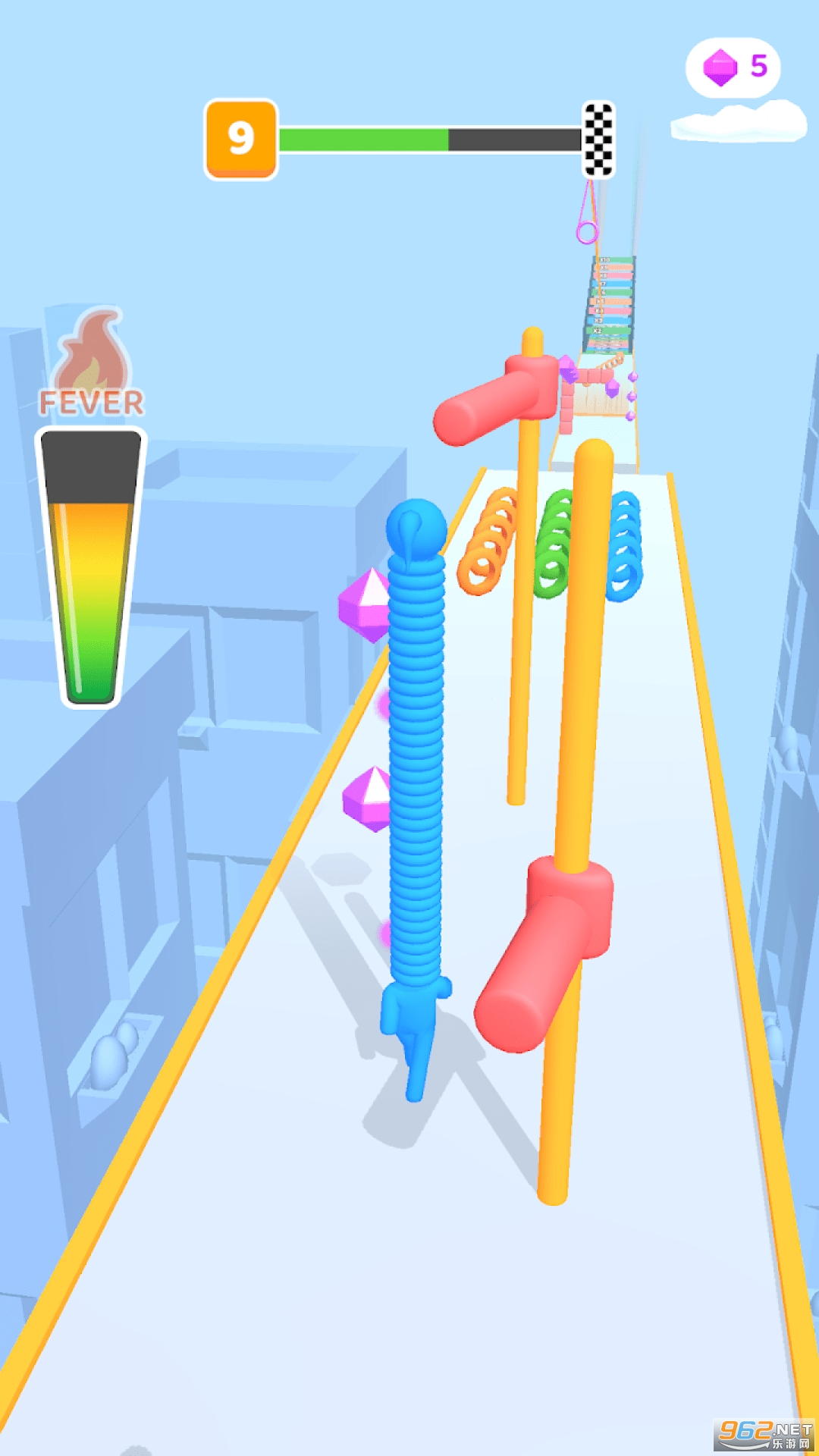 在游戏的刚开始玩家的角色还是一个非常正常的形象,然后在一路上你是需要收集一些弹弓,然后玩家角色就会变成一个非常滑稽的弹弓人,长长的弹弓身体可以让玩家跳跃起来,虽然很好笑但是越大的弹弓身体可以让玩家更快到达终点。