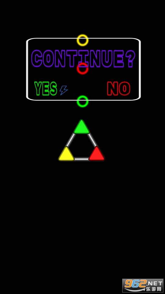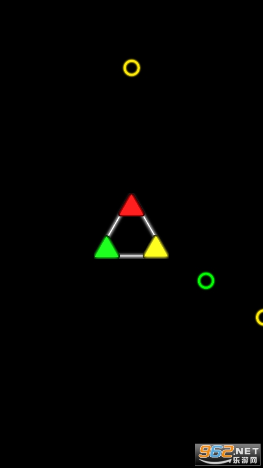 比较考验玩家反应能力的一款休闲游戏,可以自己对难度进行选择,通过旋转三角,来让小球和自己颜色相同的小角进行碰撞,快来下载吧!