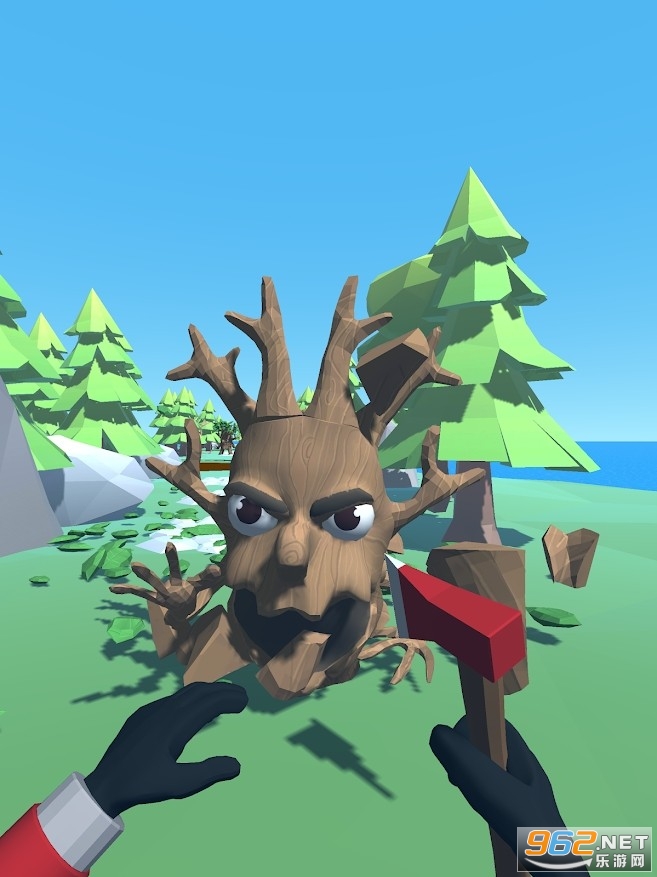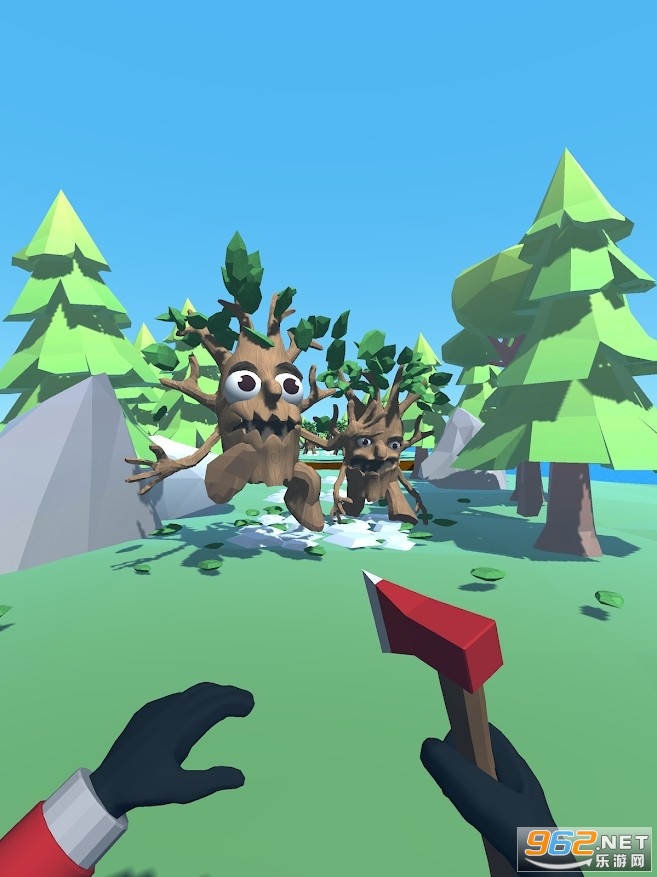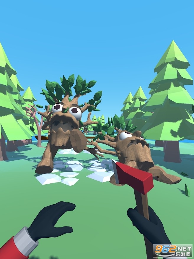 这些看似非常奇怪的敌人就是前面所提到的妖树,它们都成精了,将你们生活的村庄破坏摧毁了,所以你必须要站出来,使用武器去消灭妖树,如果很愤怒的话,也可以将它们砍倒剁碎,游戏玩起来非常的解压。