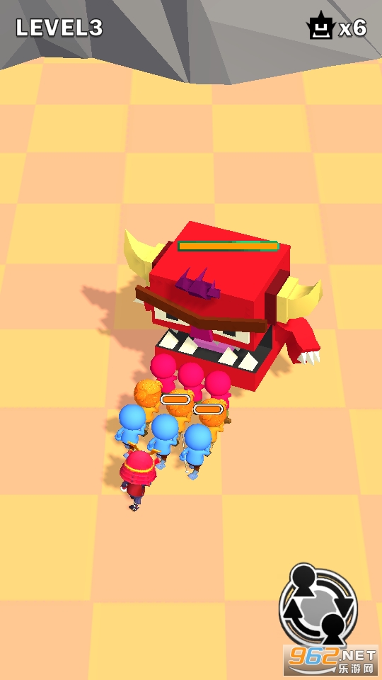 集结你不同颜色的小人战队开始和boss进行比拼竞技,注意好走位以及随时根据小人的状态来进行切换位置,尽量在减员更少的情况下完成战斗的任务。