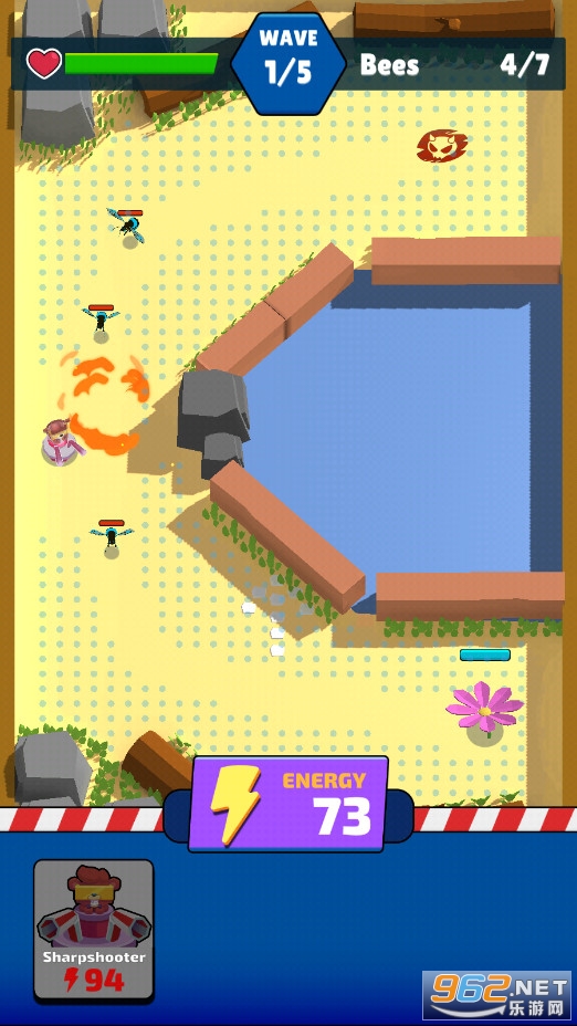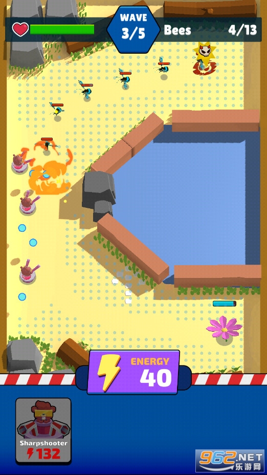 3、游戏中的弓箭手泰迪熊为保护伙伴与敌人进行战斗!