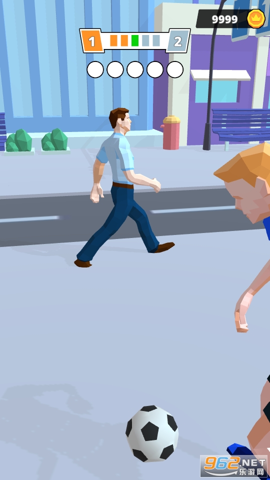2、置身在街道之上,玩家通过操控着角色,能够掌控踢足球的力度和方向,恶搞行人玩法还是挺有意思的。