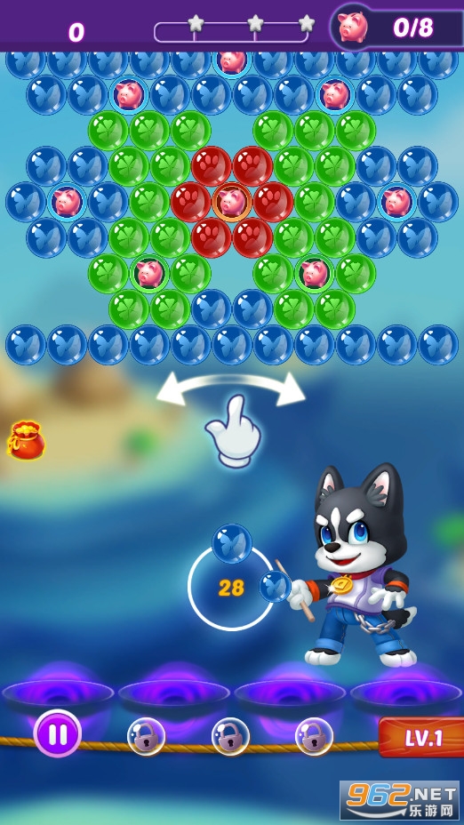 一款非常不错的休闲卡通益智闯关游戏,游戏中你将发射各种各样不同颜色的小球来进行消除,面对各种各样的关卡巧妙的选择发射的路径,最终消除全部的泡泡,游戏的玩法轻松有趣,推荐给喜欢休闲游戏的玩家。