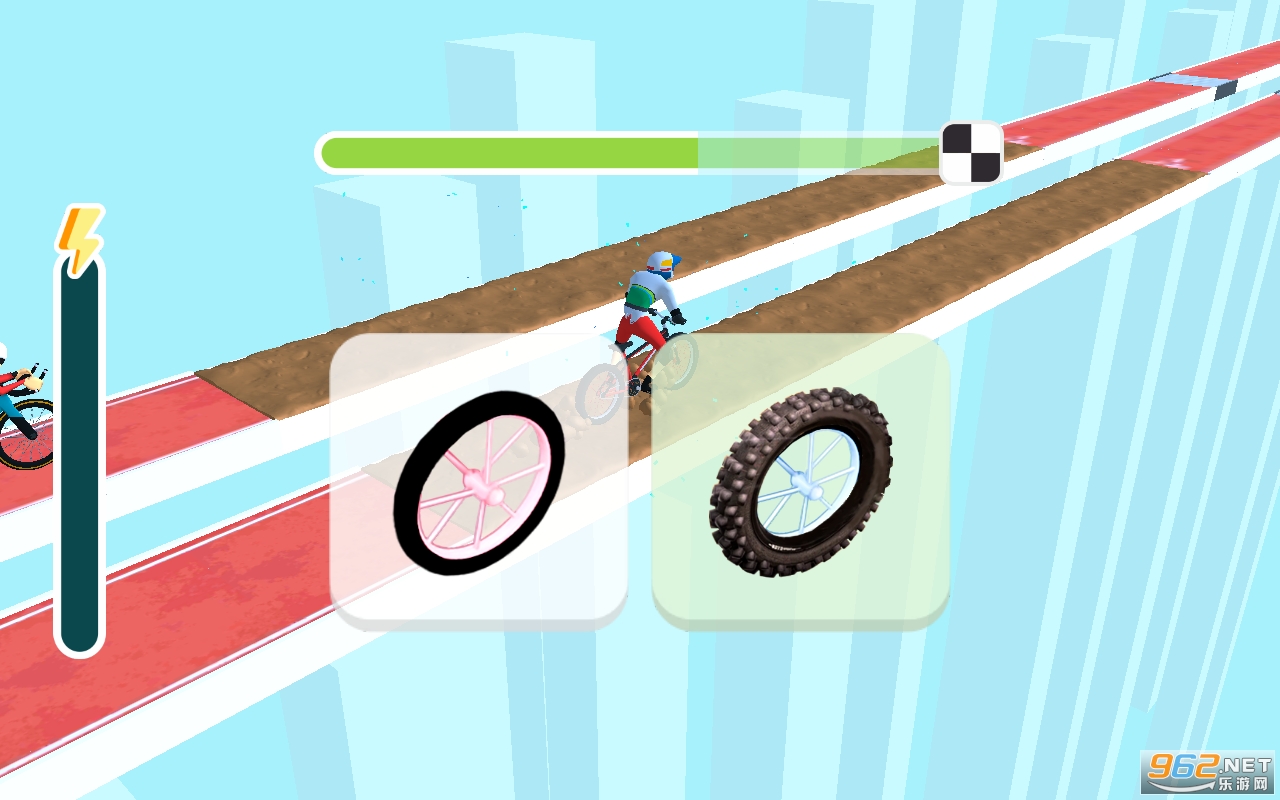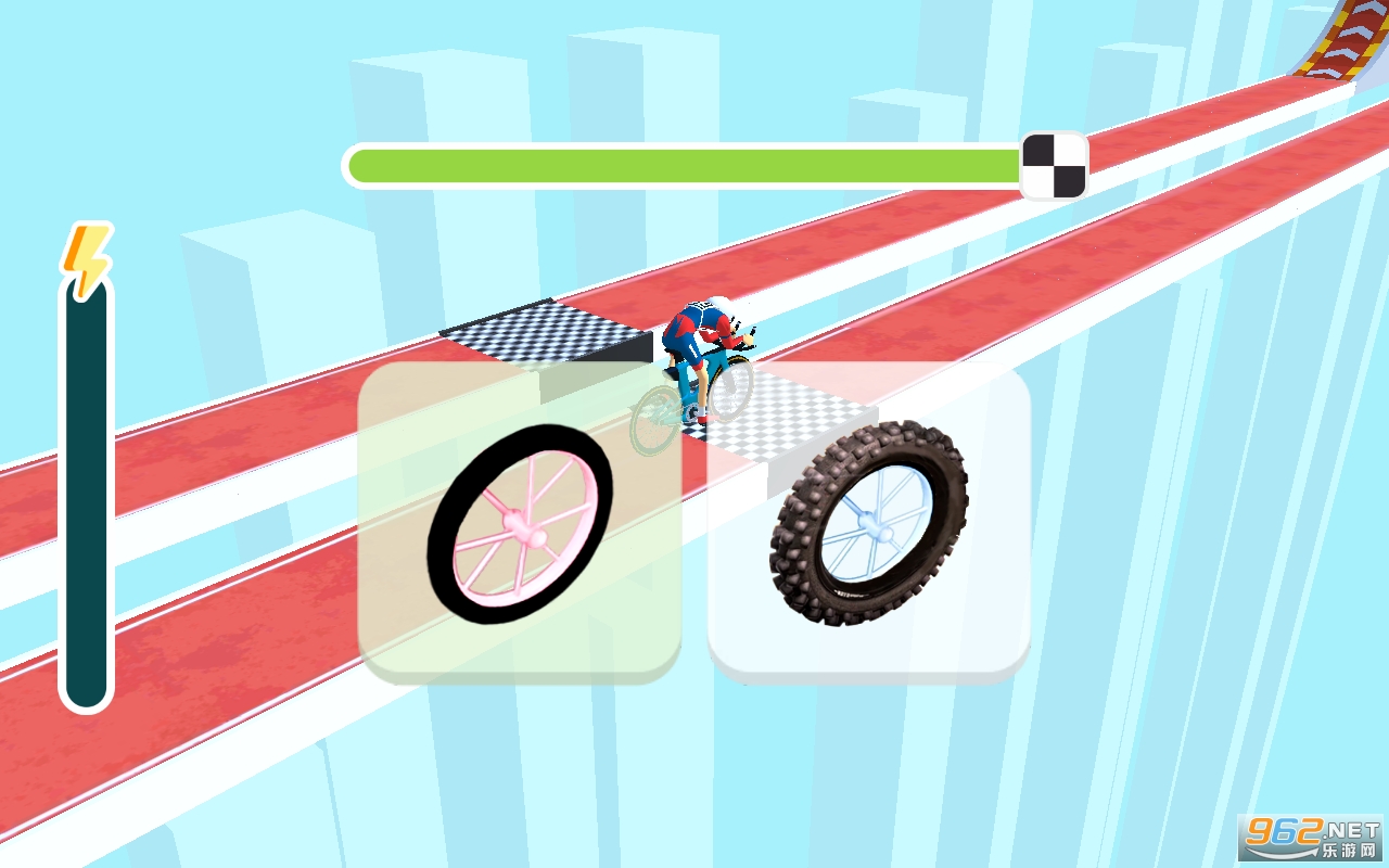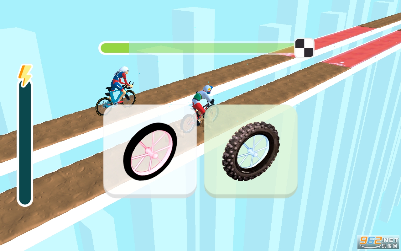 在这个危险的自行车游戏中测试您的技能!尝试及时更换正确的车轮并首先完成!