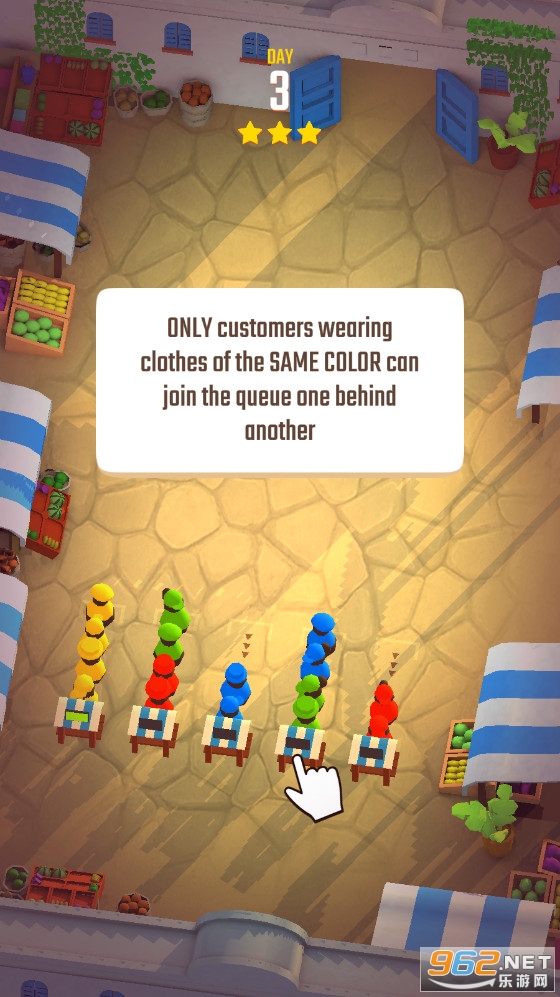 2、让所有色彩相同的人站在一起就能过关,你必须能仔细的思考找到办法;