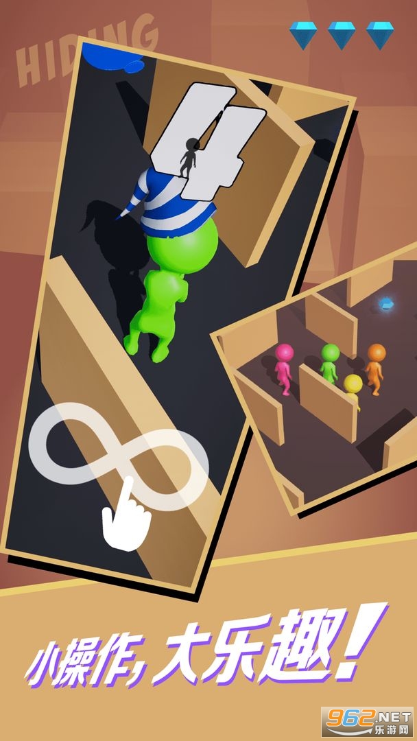 躲猫猫大侠是一款超经典的躲猫猫游戏。可以扮演负责抓人或者被抓的角色,在每个关卡特制的迷宫中躲藏寻找,途中还可获取钻石,可以让你的角色穿上新衣服,与众不同~快来一起成为躲猫猫大侠吧~