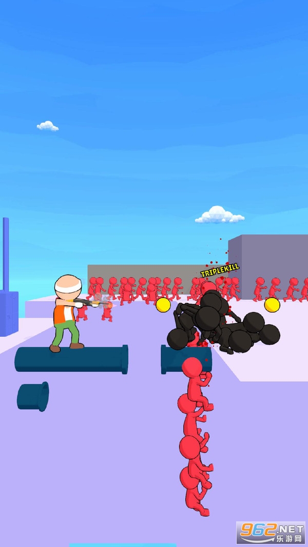 款动作射击类的弹射游戏,游戏画面场景设计的比较简约,玩家在游戏中可以收集更多的武器装备进行对战,同时游戏中还设置有丰富的游戏关卡等待玩家进行挑战,需要注意的是尽可能避开人质不要让他受伤。