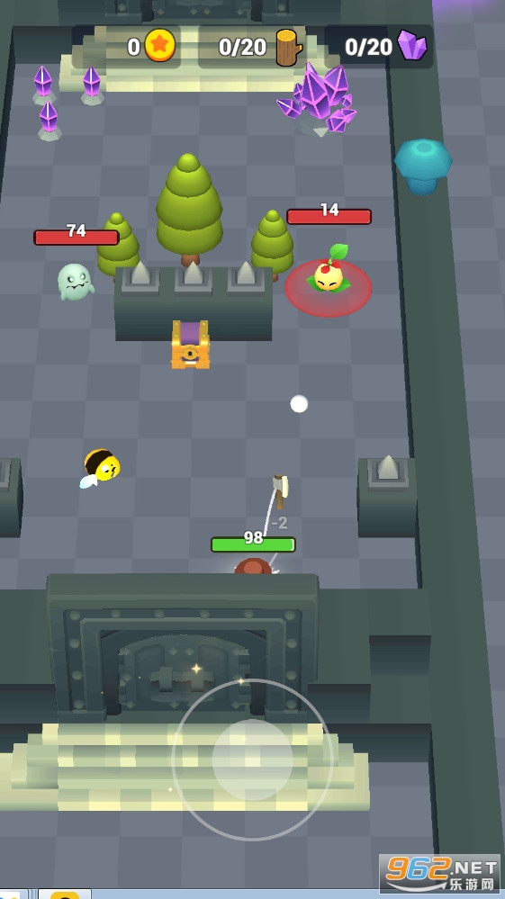 玩家在游戏中将进行非常刺激的地牢冒险。游戏的操作非常的简单,玩家只需要操控角色进行走位,躲避敌人的攻击就可以。升级自己的装备,让你的输出更加的厉害。