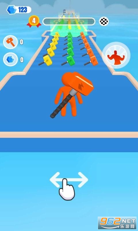 《巨大的锤子》是一款魔性的休闲游戏,玩家需要获取正确颜色的锤子,敲击更多的方块,可以左右滑动,需要巧妙的躲避开各种陷阱机关,来挑战一下吧。