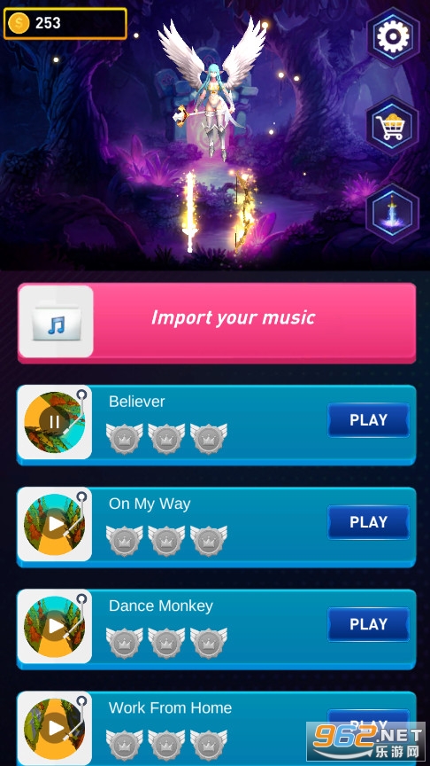 Game Slash:简单地选择您喜欢的歌曲,按住并拖动即可移动军刀角色,并在节拍上削减怪物。不要点击!这不是Tap Tap游戏。