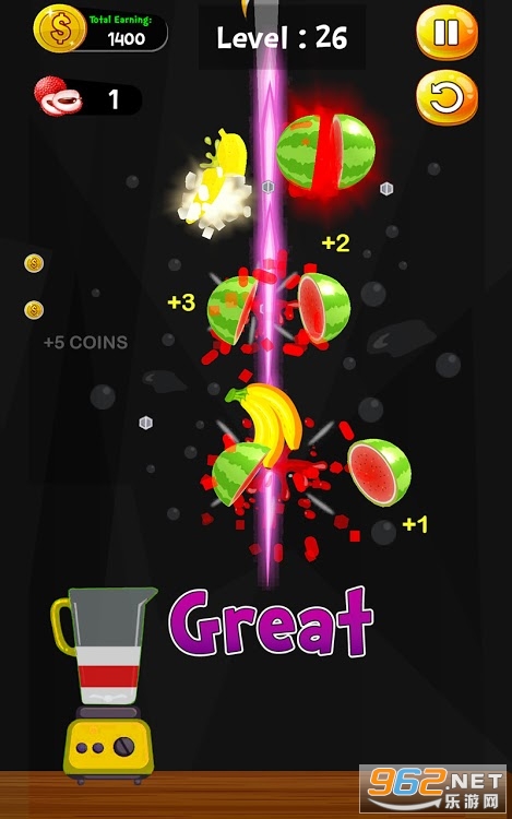 《疯狂果汁大师最新版》是一款类似于切水果系列游戏的休闲闯关类游戏,游戏中玩家可以在各个关卡之中进行切割水果,玩法跟这类切水果玩法都一样,注意避免切到炸弹,连斩次数越多则你相应所获得的分数就越高!