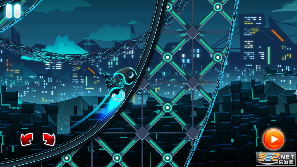 这款游戏的画面非常的炫酷,因为自行车都是有霓虹灯的,在画面上就显示的非常的帅气,各种各样的障碍物,你都需要骑着,自行车很好的进行避过