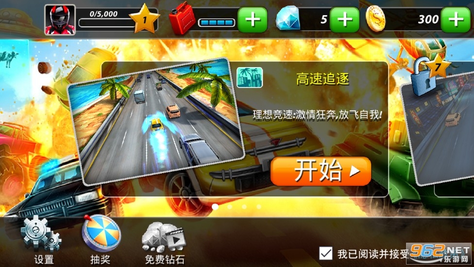 1、飙车挑战赛在不同的位置比赛,包括山区,沙漠和城市,握住方向盘加速车辆。