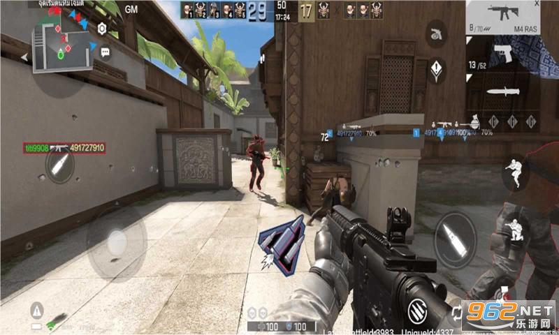 2、实时联网强,有对战大厅提供玩家构建枪战房间,后期还会有排位系统。