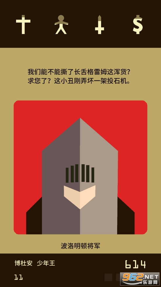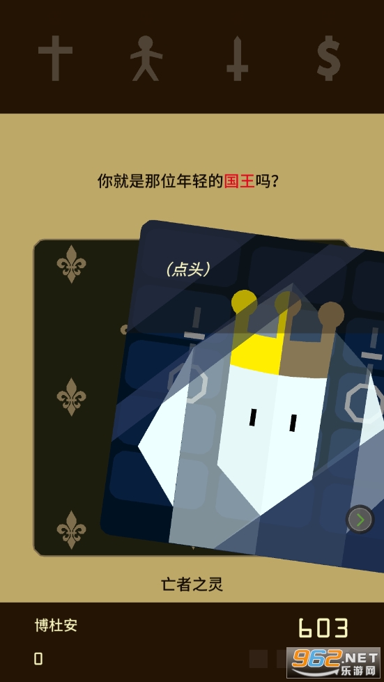 在游戏的大部分时间内玩家需要做的事就是左右滑——详尽阐述了一位统治者生涯中的全部。疲惫周转于军队、教会、民众、财库四者间的制衡,和厨子、情妇、女巫、小丑等角色间的日常闲琐互动,看似波澜不惊实则暗藏杀机的各类事件……伴随着逐渐解锁的卡牌组和一代代王权更迭,在轻巧滑动之间,一份鲜活而沉重的国王生涯体验已然能够令人了然于心。