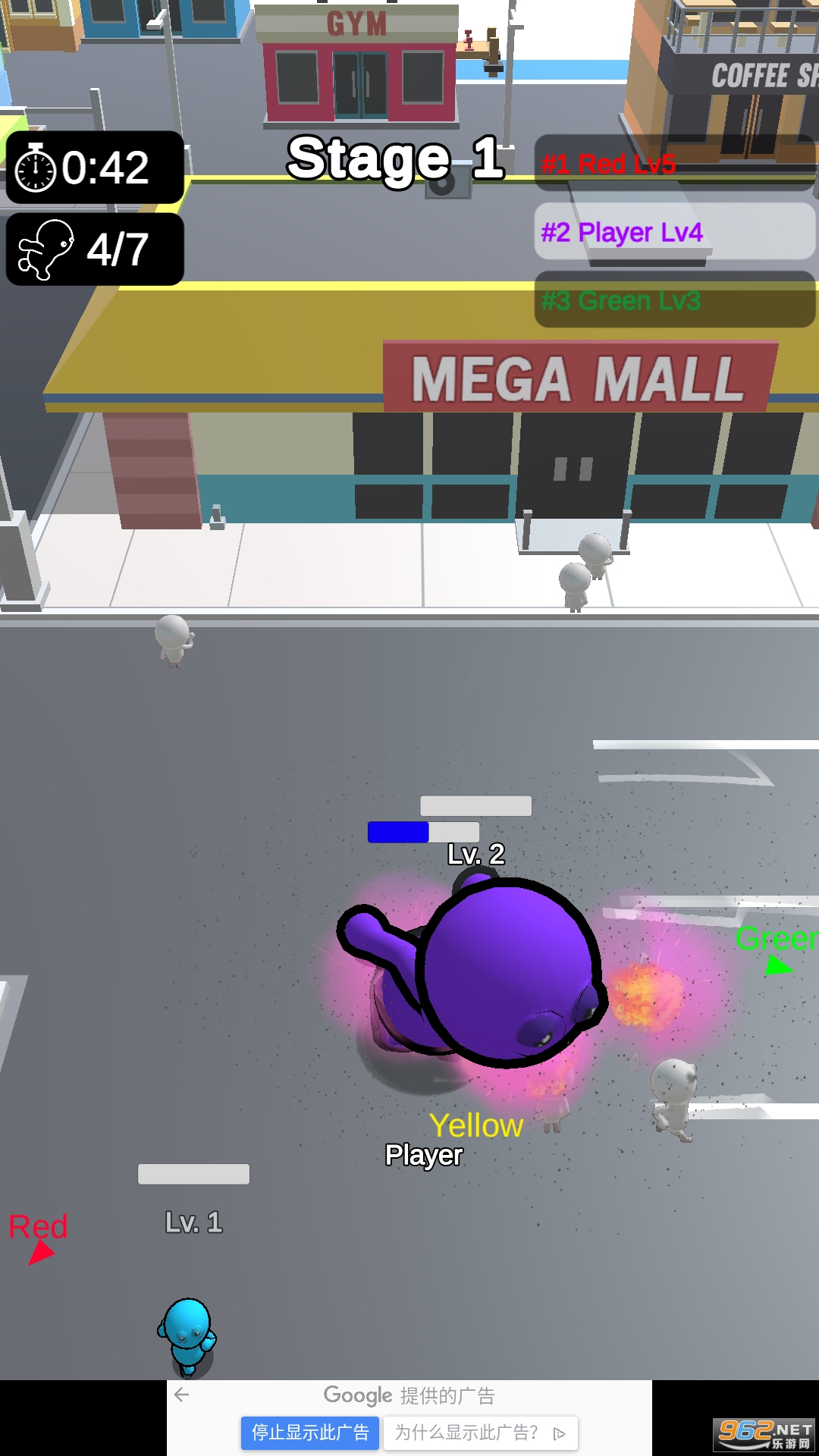 如果你打一个灰色的家伙,你可以吸收它并变得更大。