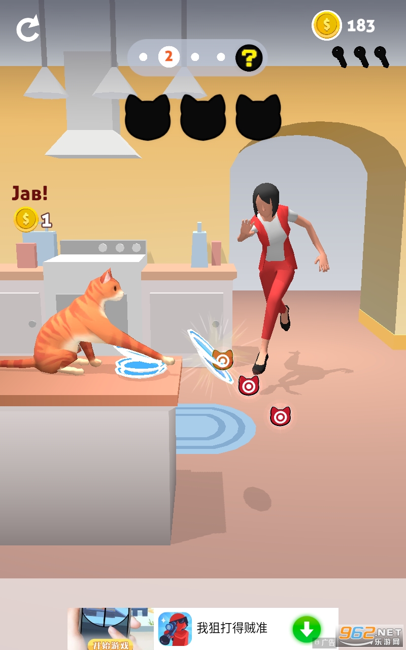 猫咪加比是一款欢乐捣蛋玩法的闯关挑战类游戏,你能扮演一只可爱又调皮的宠物猫咪,你每天都能做自己喜欢干的事情,用你的爪子能将所有的物品从桌面上推下去,让整个房间都能一团糟,并且你还能灵活的展示你的操作,让主人无法抓住你才能过关。