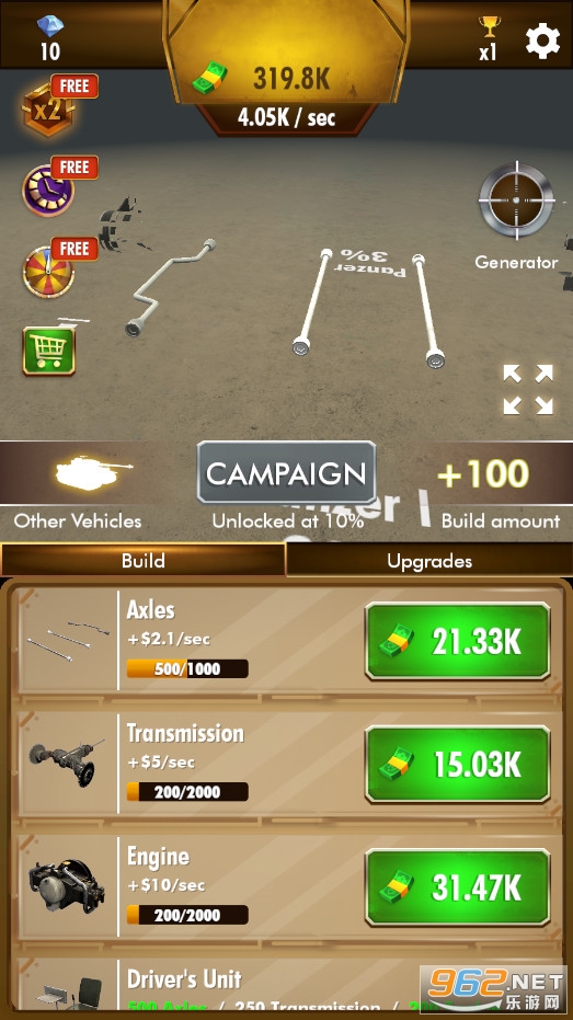 《闲置装甲车》(IdlePanzer)是一款轻松卡通风格的放置装甲车组装游戏,在这款游戏中你将一个个零件的不断的组装你的装甲车,游戏的采用了放置的模式,不断的解锁零件最终成功完成装甲车的组装,还在等什么呢?赶快下载体验吧!
