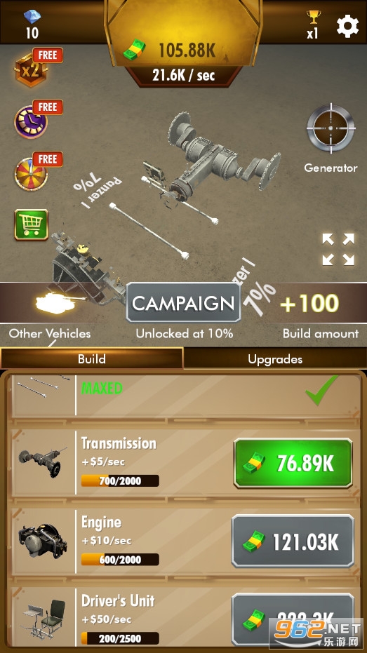 一款不错的放置点击游戏,游戏中玩家将完成有趣的挑战,你需要不断的进行点击来组装出各种各样不同的驾驶车辆,游戏的操作简单容易上手,还有着多样的玩法和挑战等待着你,驾驶坦克进行冲锋,推荐给喜欢休闲游戏的玩家。