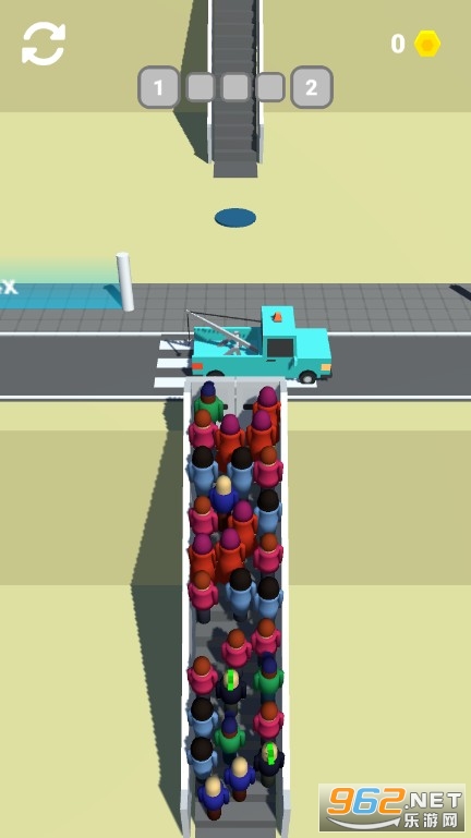 《自动扶梯运输》是一款非常魔性的休闲闯关游戏,玩家需要控制人群顺利通过自动扶梯,运送的人越多最后得到的奖励也就越多,这是一个多级自动扶梯,一个自动扶梯到下一个自动扶梯是需要穿过马路的,马路上有行驶过往的车辆,大家千万要小心,不要被车撞到。