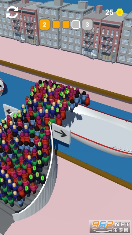 尽量让人群越来越多,让自动扶梯上的人群通过成倍数增加的成倍通道,最后上船的人越多你所获得的奖励自然也就越多,这是一款非常搞怪的休闲闯关游戏,非常考验玩家的反应和手速,要快速点击移动自动扶梯上的人群。