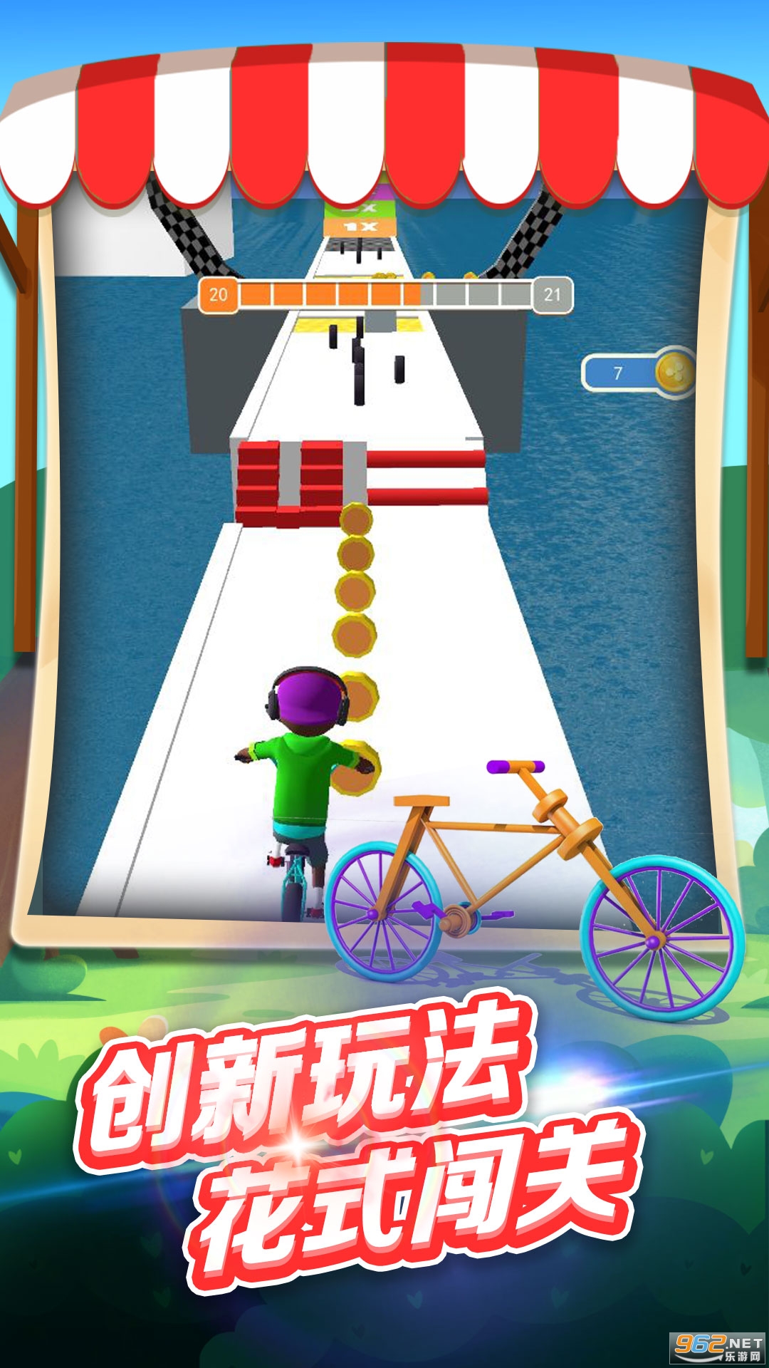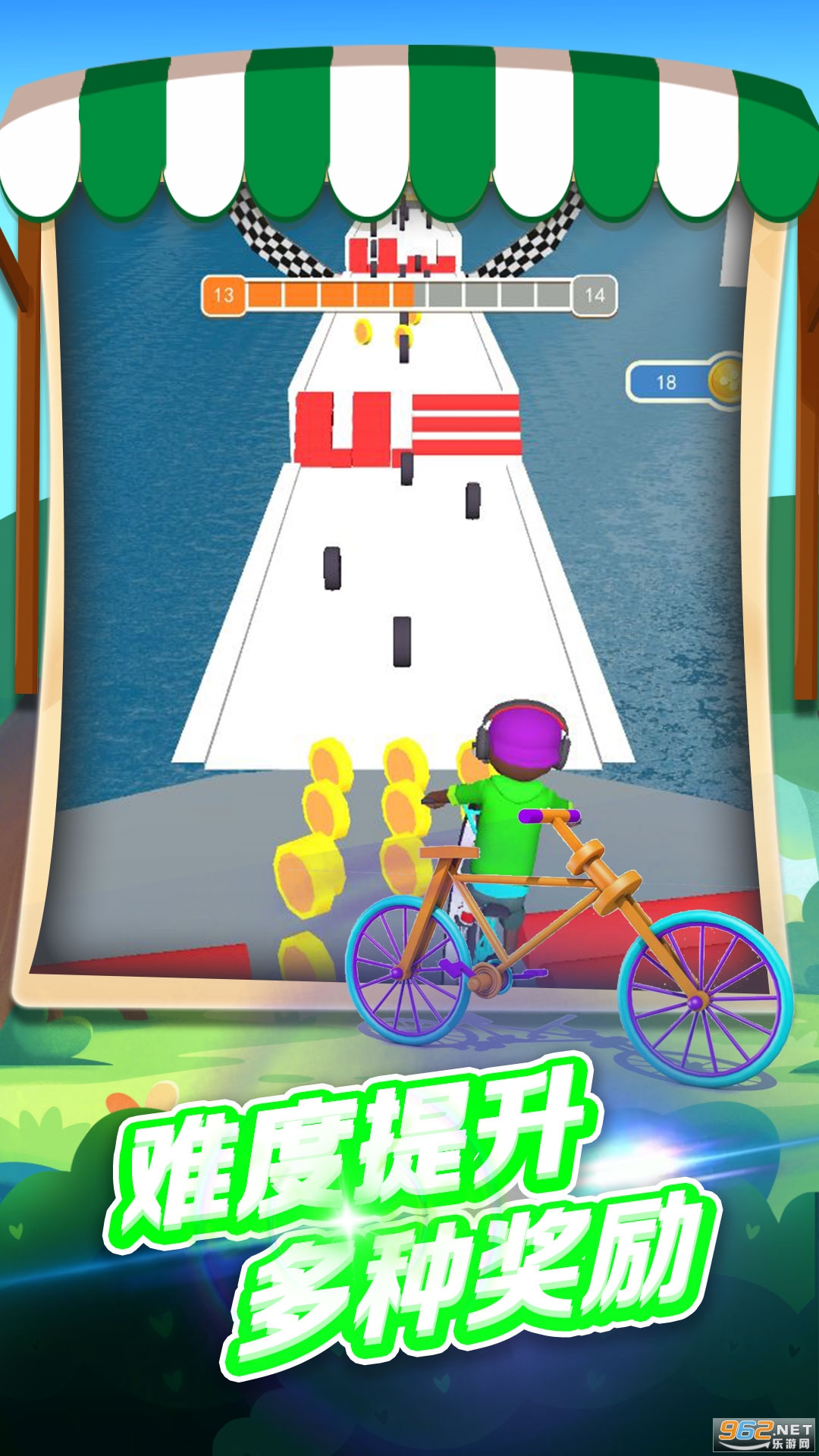 2、解锁更多的特殊道具,成功克服困难,骑着你的自行车继续前进吧;