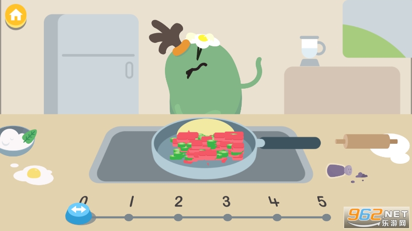 博福饿了,你是他的厨师!让他一吃到一顿完美的熟食早餐。切菜,添加食材,如鸡蛋和牛奶,搅拌均匀混合,煮,加入调味料,并喂食你的博福。准备看好他的反应!请尝试 - 有多少种不同的创作可以制作丰盛的早餐?