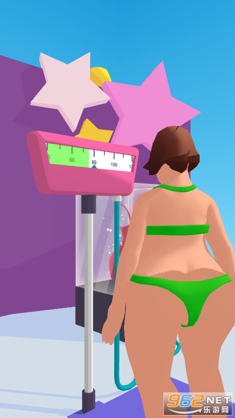 游戏的玩法操作挺简单的,比较考验你的手速和反应,玩家可以自由的选择在关卡里面是吃健康的食物,还是垃圾食品,是运动还是吃东西,以不同的形式来控制角色的体重,顺利走到终点闯关,题材比较新颖!