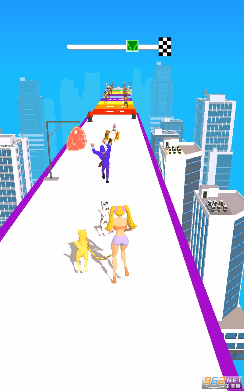 《遛狗赛跑安卓》是一款玩起来很轻松的,且玩法显而易见的游戏,玩家们控制着你的女主人公进行奔跑,不断的获取更多的小狗,在路上要躲避障碍让自己尽可能获得多的够,最后在重点击倒强盗获得更多的金币奖励,感兴趣的亲们赶紧下载吧。