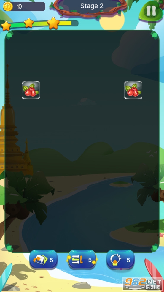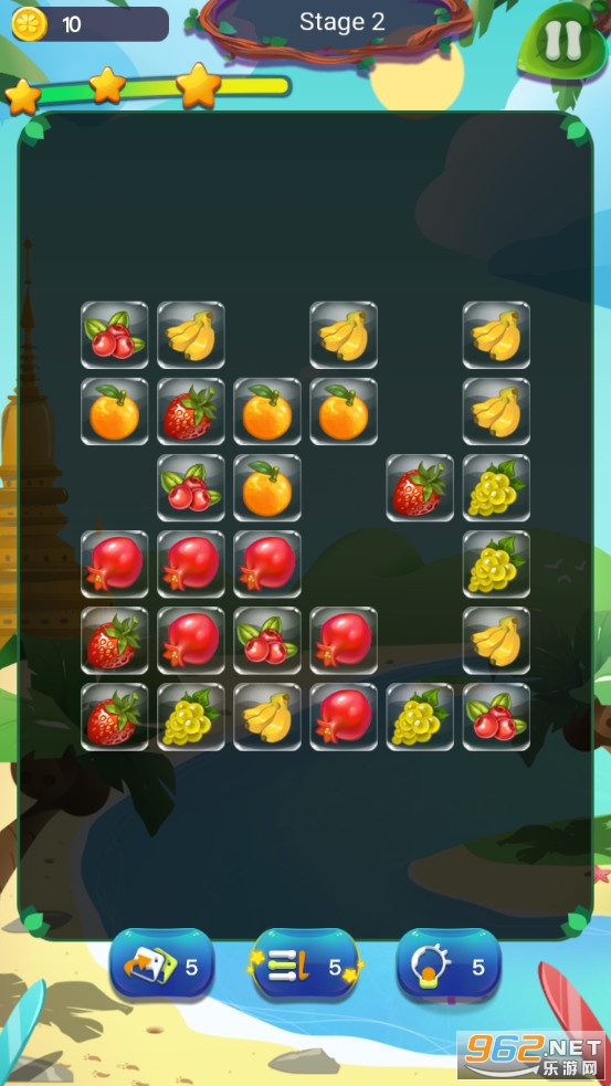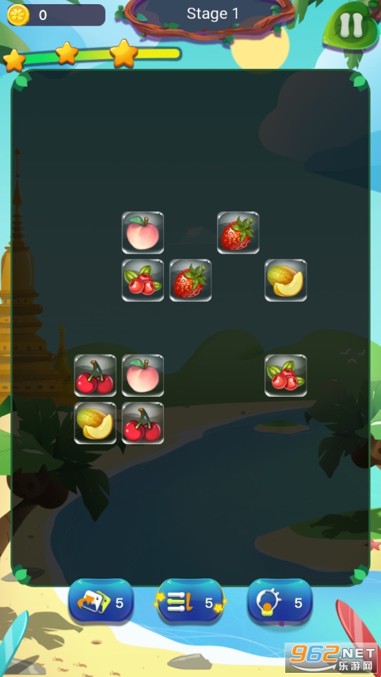2.颇具趣味性的益智游戏玩法,轻松愉快的游戏音乐,玩家在游戏中能通过控制水果的移动来进行消除,赢得更高的积分。