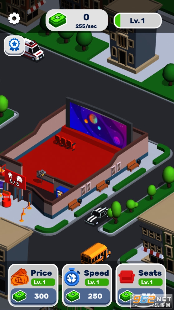 玩法非常的轻松简单,游戏风格偏向休闲放置类游戏的风格,你负责扩大影院规模以此来吸引更多的观众来观看电影,赚取收入之后增加座椅增加电影场次,使你的电影事业更加的辉煌!