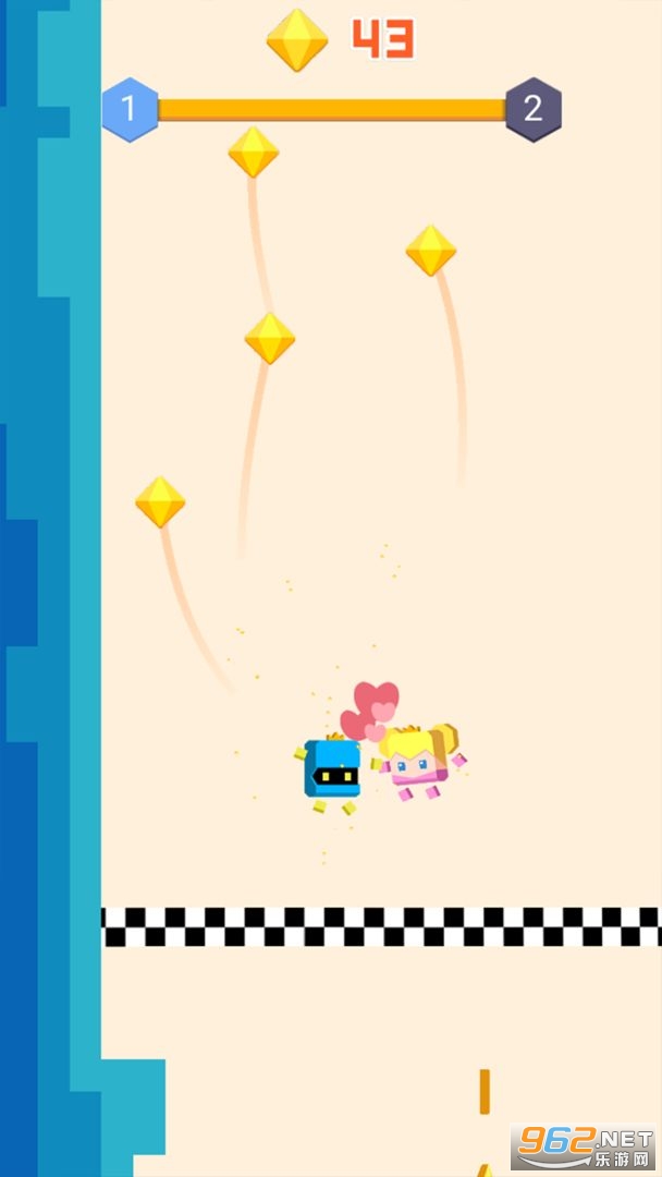 《连线积木游戏》是一款画面简约的敏捷点击类休闲手游,游戏中玩家将控制一个方块动物去冒险,点击屏幕可以让角色一点点的向上左右跳跃,最后让方块宠物和另一个方块角色在一起,注意不要撞击到墙壁了,否则挑战失败,可以收集途中的金币,解锁各种角色皮肤体验。